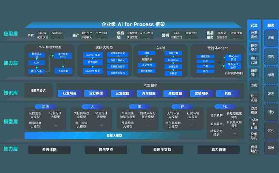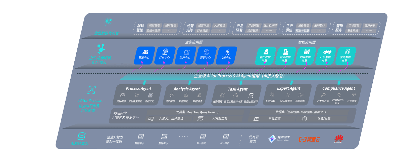 端到端的一站式AI工作空间深度融合了从企业战略规划到日常经营的全流程业务板块,,,定向解决车企内部领域多、、、、部门多、、、链条长、、场景碎片化等难题,,,,支持车企快速构建以AI为核心的生产力写作体系,,实现任务执行与AI能力的无缝集成与交互